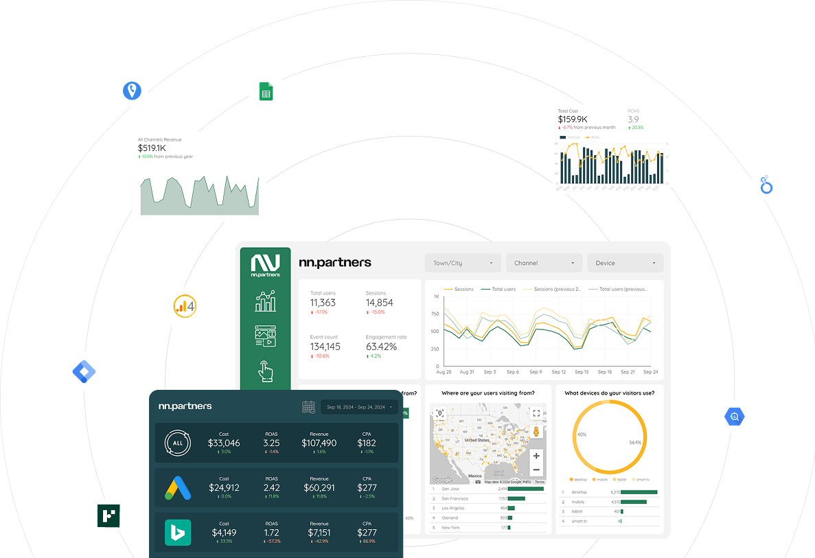 At nn.partners, we transform raw data into actionable business intelligence. Whether you’re an eCommerce brand, lead-generation business, or service provider, we customize analytics solutions that eliminate wasted ad spend and boost your marketing efficiency.